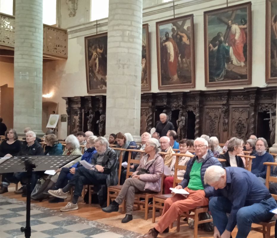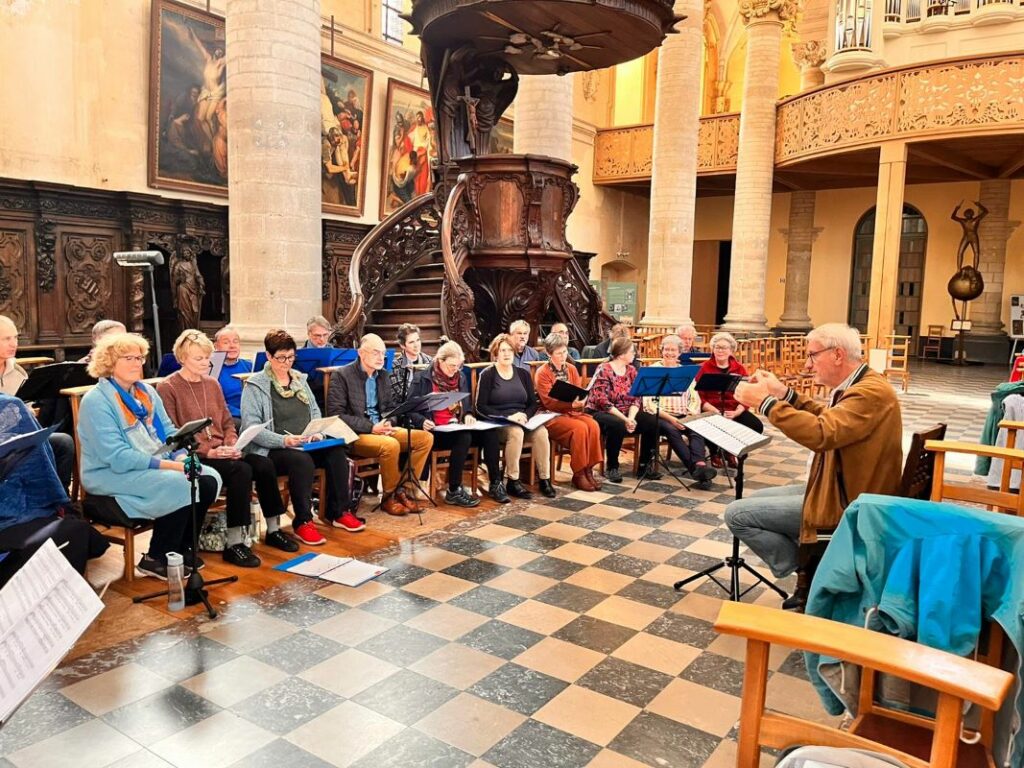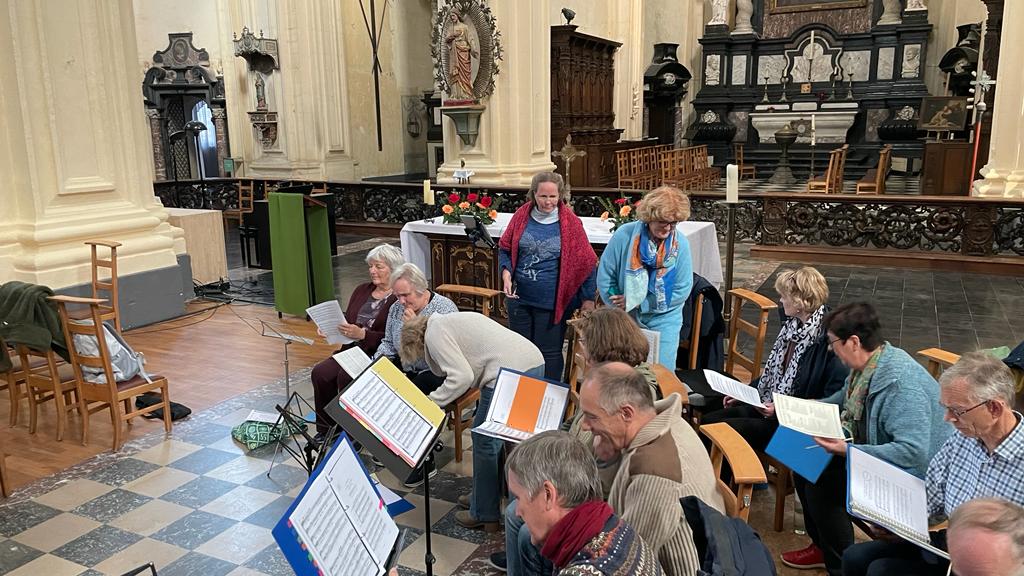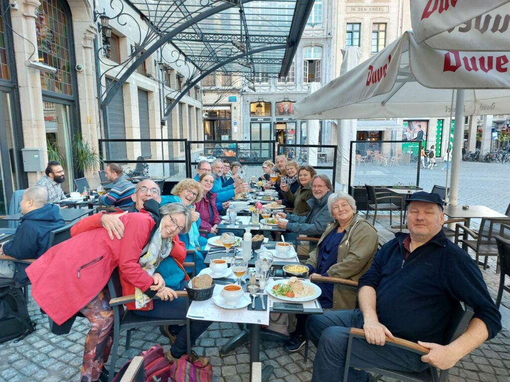 Een aantal leden was zelfs al vrijdagmiddag gekomen voor een stadswandeling aan de hand van drie leden van het Leuvense koor, die de groep kundig langs de bezienswaardigheden van de stad leidden.