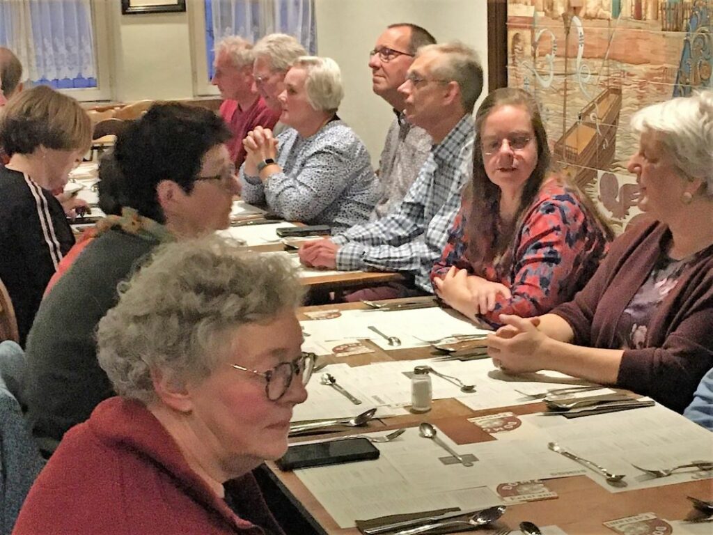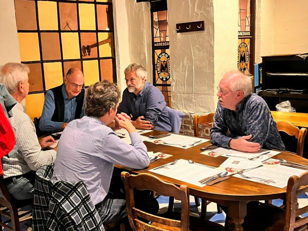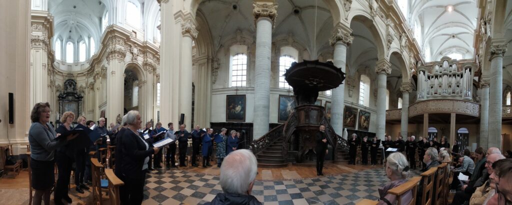 In het weekend van 30 september – 2 oktober kwam Panchanter voor het eerst sinds 2011 weer bij elkaar. De reünie zag eruit als een ouderwets Panweekend: (oud-)lid Iris Steen had in haar woonplaats Leuven (opnieuw) repetitieruimte en concert georganiseerd. Op vrijdagavond werd iedereen verwacht bij Iris thuis, voor een warme maaltijd. Zaterdag en zondagochtend was grotendeels gevuld met repeteren en alle resterende tijd werd er bijgepraat, gelachen, herinnerd, gegeten en gedronken. Klein maar belangrijk verschil met veel verleden weekends was dat we niet hoefden te overnachten in stapelbedden op slaapzalen, maar in onze eigen zelfgekozen hotelkamer :-). Een ander verschil: we gaven op zondagmiddag een dubbelconcert, samen met het Leuvense koor Florilegium, waarin Iris zich tegenwoordig laat horen.